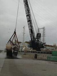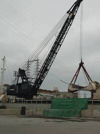 写真は、兵庫県尼崎にある港湾にて荷下ろし作業の様子です。