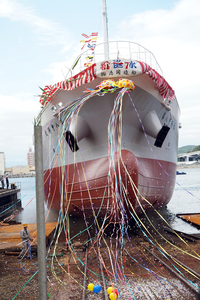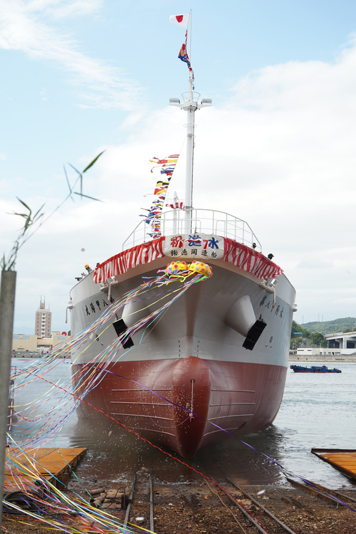支綱切断も、滞りなく行われ、無事に進水した様子に、感動を覚えました。
